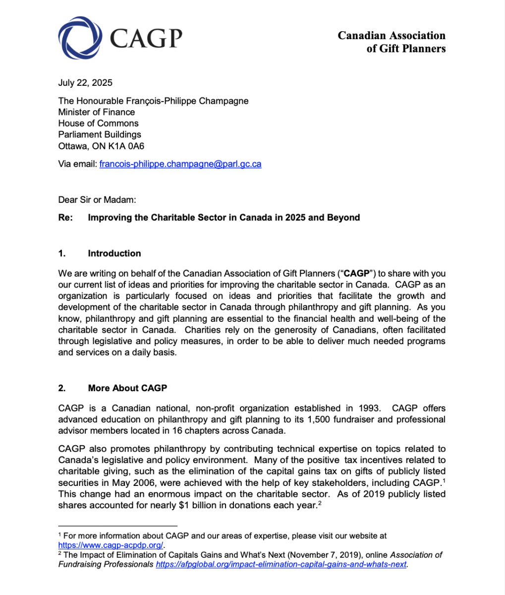 Our Government Relations Committee has outlined key recommendations to strengthen Canada’s charitable sector in a letter to the Minister of Finance. Focused on philanthropy and gift planning, the letter highlights three priorities: